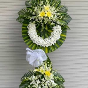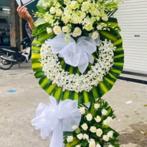 XT HCB 923 – Hoa Chia Buồn Vòng Lan Thái Trắng Dày 1 Tầng
